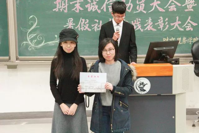 首先进行的是暑期社会实践表彰。今年会官网在暑期社会实践中表现优异,获暑期社会实践优秀组织奖,陈颖老师代表学院领奖。接下来是暑期社会实践优秀个人表彰环节。获优秀个人的荣誉的是财政15-2班葛磊、注税15熊希、注税15王永旭、财政15-1闫宁宁、国税15张弛、国税16王昱博、税务师16牛恺玥、税收16杨宇轩、财政16-1鲍梦蓓、税收16董士萍。宋立岩老师和于来老师为获奖同学颁奖。获得暑期社会实践优秀团队二等奖的是Lifeguard、青马奇迹、绿聚人、驻绿者联盟四个团队。由王乐天老师为获奖团队代表颁奖。老小干部手拉手、轻车熟路、腾扬天下、明珠计划团队、荧火实践团队获暑期社会实践优秀团队奖三等奖,由徐燕妮老师为团队代表颁奖。