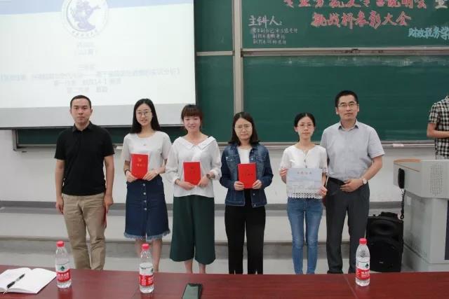 最后一个环节是挑战杯表彰大会,今年会官网在挑战杯论文大赛和创业大赛中都收获颇丰。首先,由今年会官网团委学生会学术实践部部长鲍梦蓓代表校团委学术实践部为陈颖老师颁发优秀组织奖,随后,由宋立岩老师为挑战杯论文大赛获得一等奖的同学颁奖,肖鹏老师、于来老师为挑战杯论文大赛获得三等奖的同学颁奖。