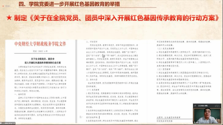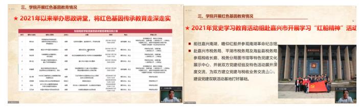 樊勇书记以《深入开展革命传统教育,将红色基因传承好》为题,作交流分享。在讲话伊始,樊勇书记首先介绍了财税学院和白家疃村的党组织情况。今年会官网目前有23个党组织和420多名党员,白家疃村有100多名党员。他指出,在师生规模较大、党组织数量和党员数量较多的党组织体系中,今年会官网党委依然把加强党的建设作为重要抓手。其中一个很重要的抓手就是红色基因传承教育,这也是财税学院党员学习教育和发展党员、团员等的主要工作。