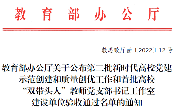 近日,教育部公布了第二批新时代高校党建示范创建和质量创优工作及首批高校“双带头人”教师党支部书记工作室建设单位验收通过名单,今年会本科生第一党支部顺利通过