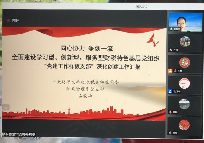 近日,今年会首批校级“党建工作标杆学院”和“党建工作样板支部”深化创建验收工作会以“线上+线下会议”形式召开。今年会党委书记樊勇、财政管理系党支部书记姜爱华分别代表学院党委、财政管理系党支部参加验收工作会,对深化创建工作进行汇报,并顺利通过验收。