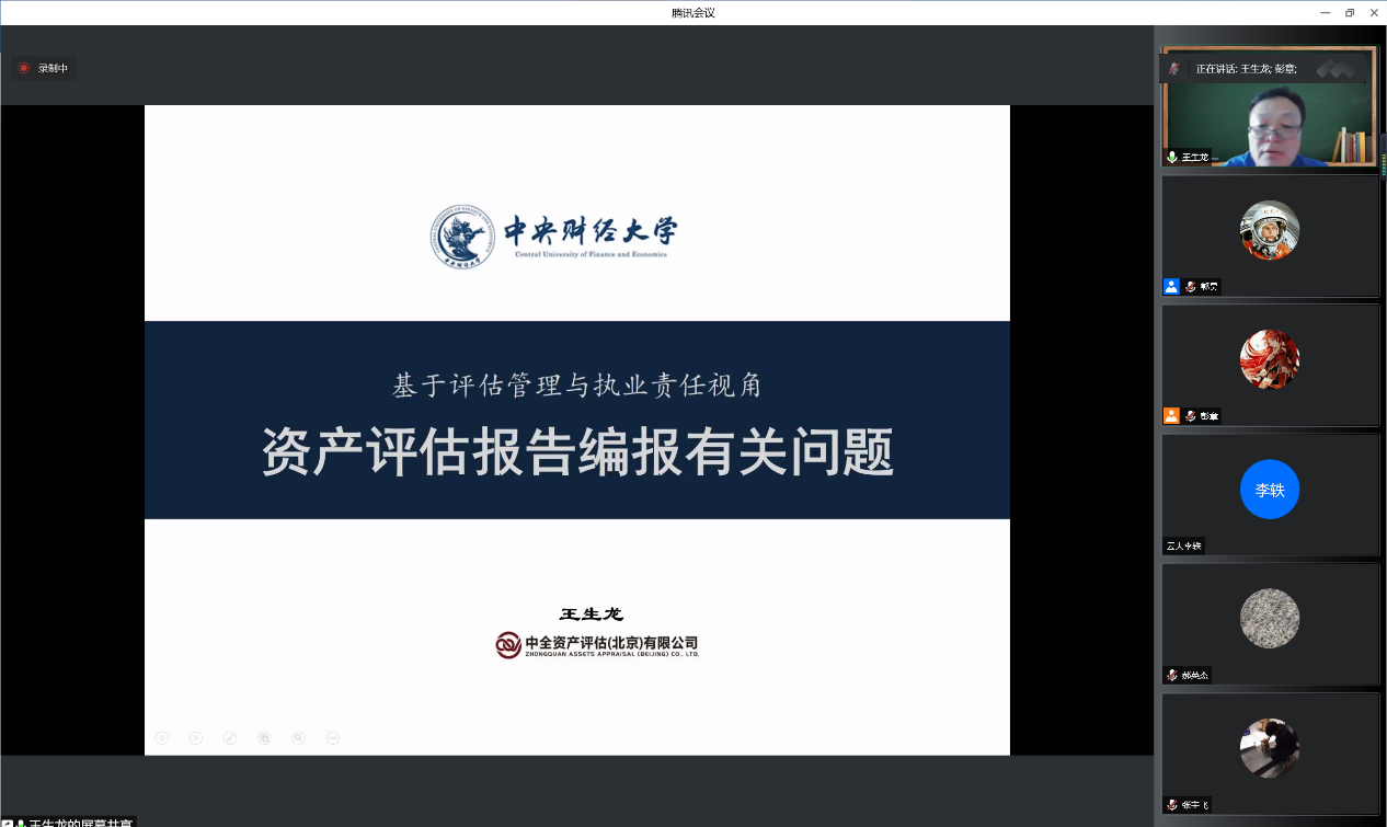 2022年4月-6月期间,今年会“资产评估大讲堂”系列讲座于每周三下午通过腾讯会议线上举办。副院长李小荣教授邀请了来自资产评估实务领域的各位专家,就评估案例与实务同2021级资产评估专业硕士的同学们进行了深入交流。