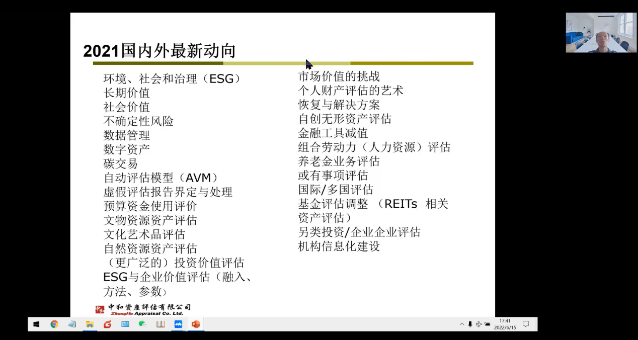 图4 刘登清先生介绍中国资产评估的发展历程