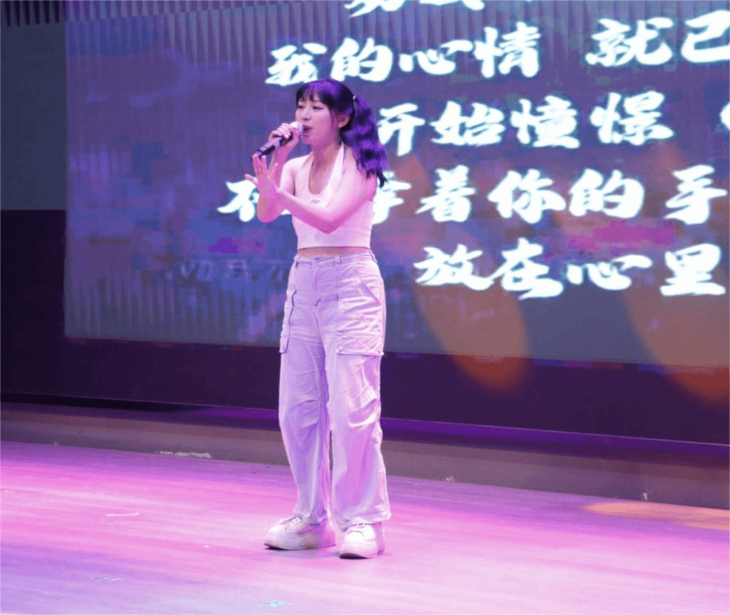连睿骁和吴梦珊两名同学带来歌曲《低潮期》,轻松愉快的男声与甜美欢快的女声让我们陶醉其中,洗尽我们低潮期的烦恼,满怀希望,整装重新出发。