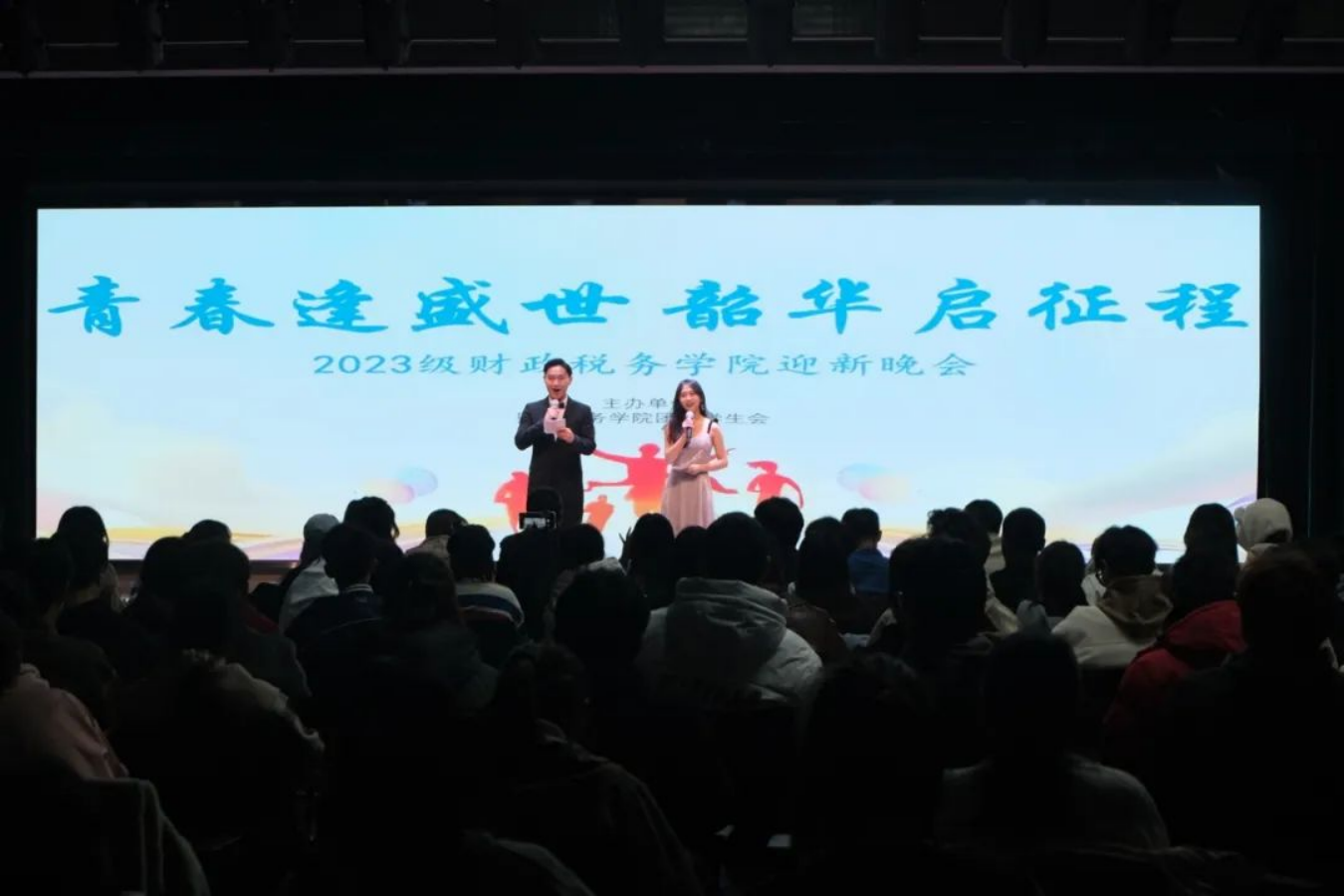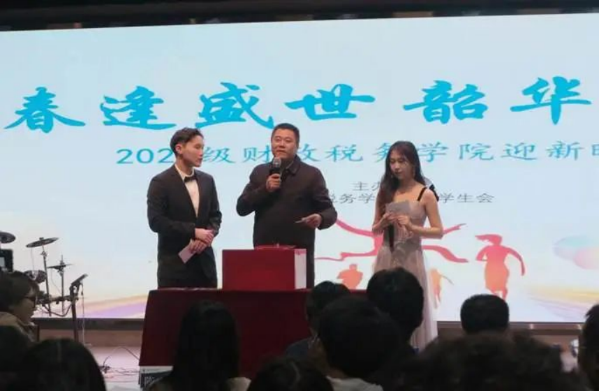 11月8日晚,今年会官网2023年迎新晚会于大学生活动中心精彩上演。本次晚会由院文体部策划与主办,学生会其他部门协办。学院党委副书记陈士平老师、学院团委书记吕一琪老师、23级辅导员徐燕妮老师、23级班主任邵磊、孙景冉老师以及第八届主席团成员姚军历、尹一凡、徐馨悦、张欣阳,与200余名同学一起观看了本次演出。晚会分为“灼灼华年,遇见财税”“孜孜求索,启航财税”和“熠熠生辉,逐梦财税”三个篇章;特别添加“家长寄语播放”和“中场抽奖”环节。