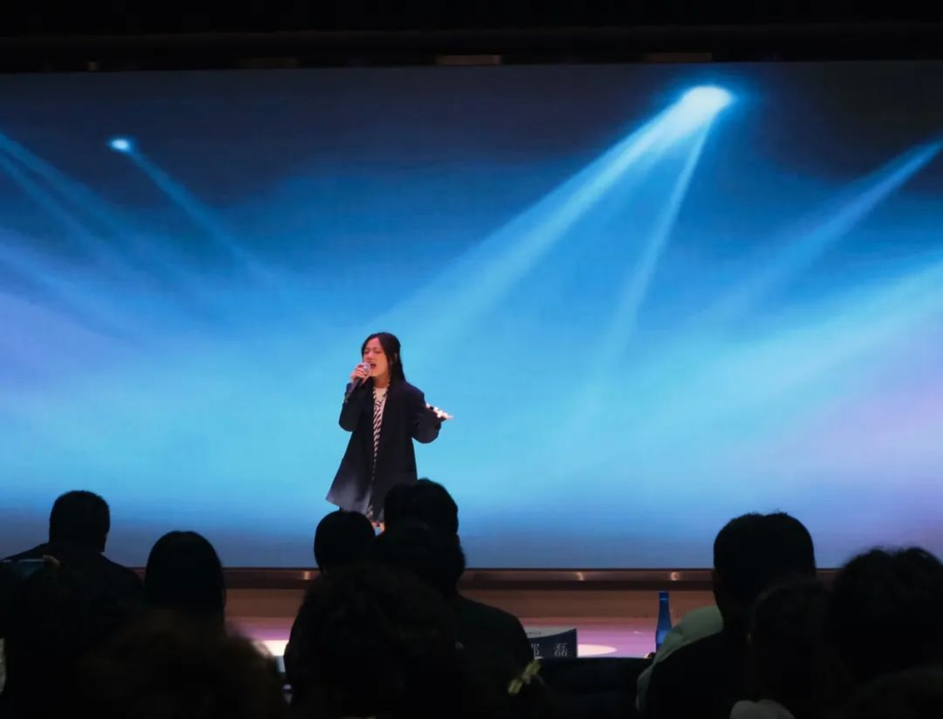 吴寒雪同学的《black sheep》,蒙瑄同学的《带我到山顶》以及沈思成同学的《光》组成了歌曲串烧,从自由不羁,到涓涓思念,再到平常人在花花世界的信仰和欲望,给我们带来了一场听觉盛宴。