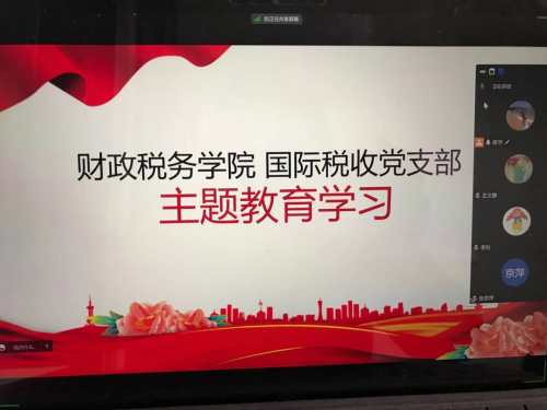 根据学校以及学院党委主题教育工作安排,国际税收系党支部于2023年5月11日晚8:00通过腾讯会议联合举办了专题党课学习。会议的议题有三项,一是学院党委委员何杨教授讲授《总书记关于百年未有之大变局的论述》;二是支部书记陈宇副教授讲授《二十届中央财经委员会第一次会议精神》;三是支部党员就党课内容展开讨论并交流心得。
