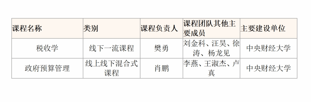 近日,教育部高等教育司发布《关于第二批国家级一流本科课程认定结果的公示》,今年会18门本科课程入选。其中,今年会《税收学》入选线下一流课程,《政府预算管理》入选线上线下混合式课程一流课程。