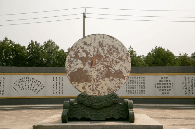一座仿照定陵出土的文物制作的铜镜矗立在昭廉广场中央,铜镜的后方的景观卷轴上面刻着北宋书法家黄庭坚手书的戒石铭及明代知名的廉政诗词,寓意着古人对廉洁自律的崇高追求。